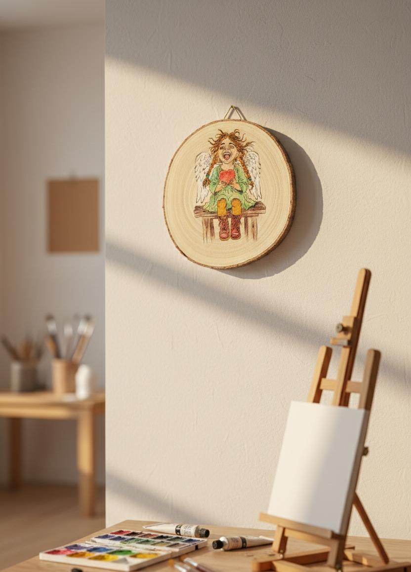 To anioł, który nie tylko zdobi, ale także opowiada historię — historię o dziecięcej radości, spontaniczności i miłości do świata.
