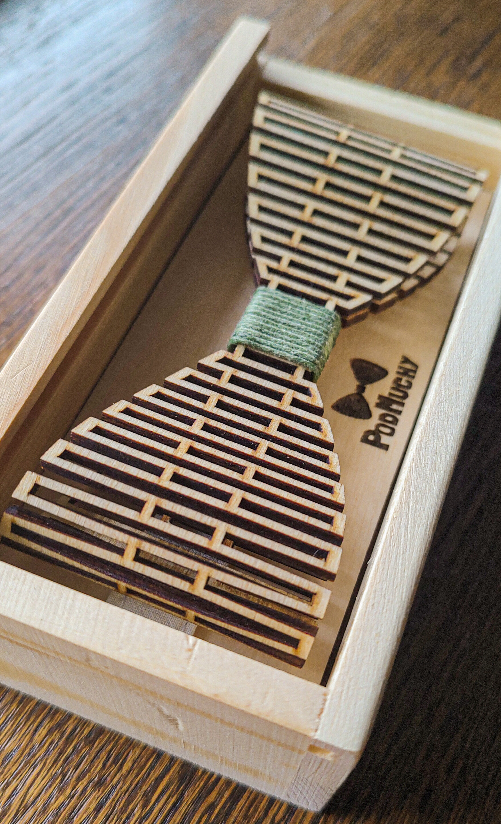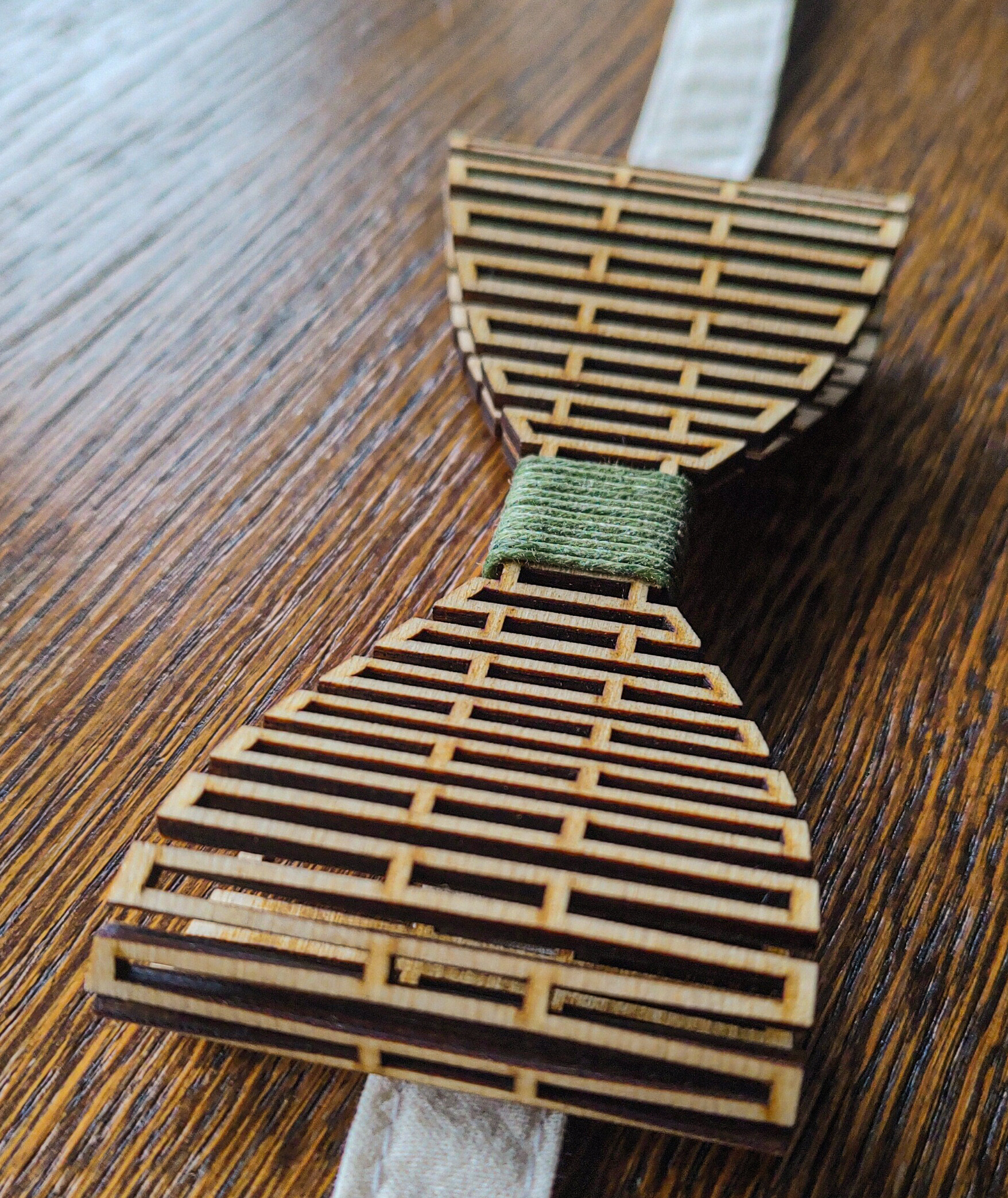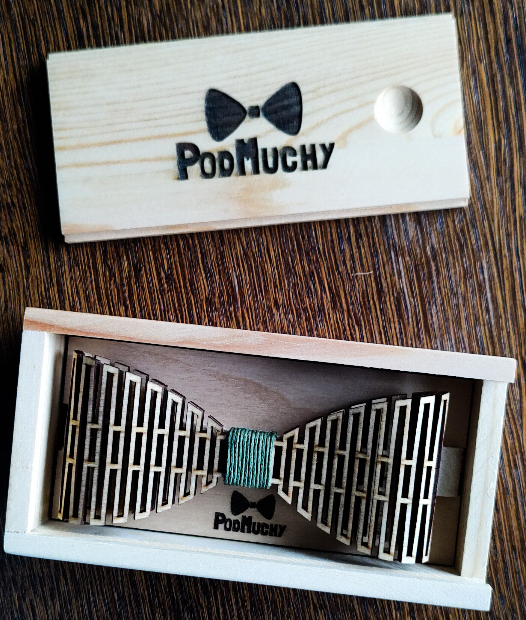 materiał – wykonana z wysokiej jakości sklejki oraz sznurka, ręcznie wykończona. Posiada regulowany, bawełniany pasek, zapewniający wygodę noszenia.